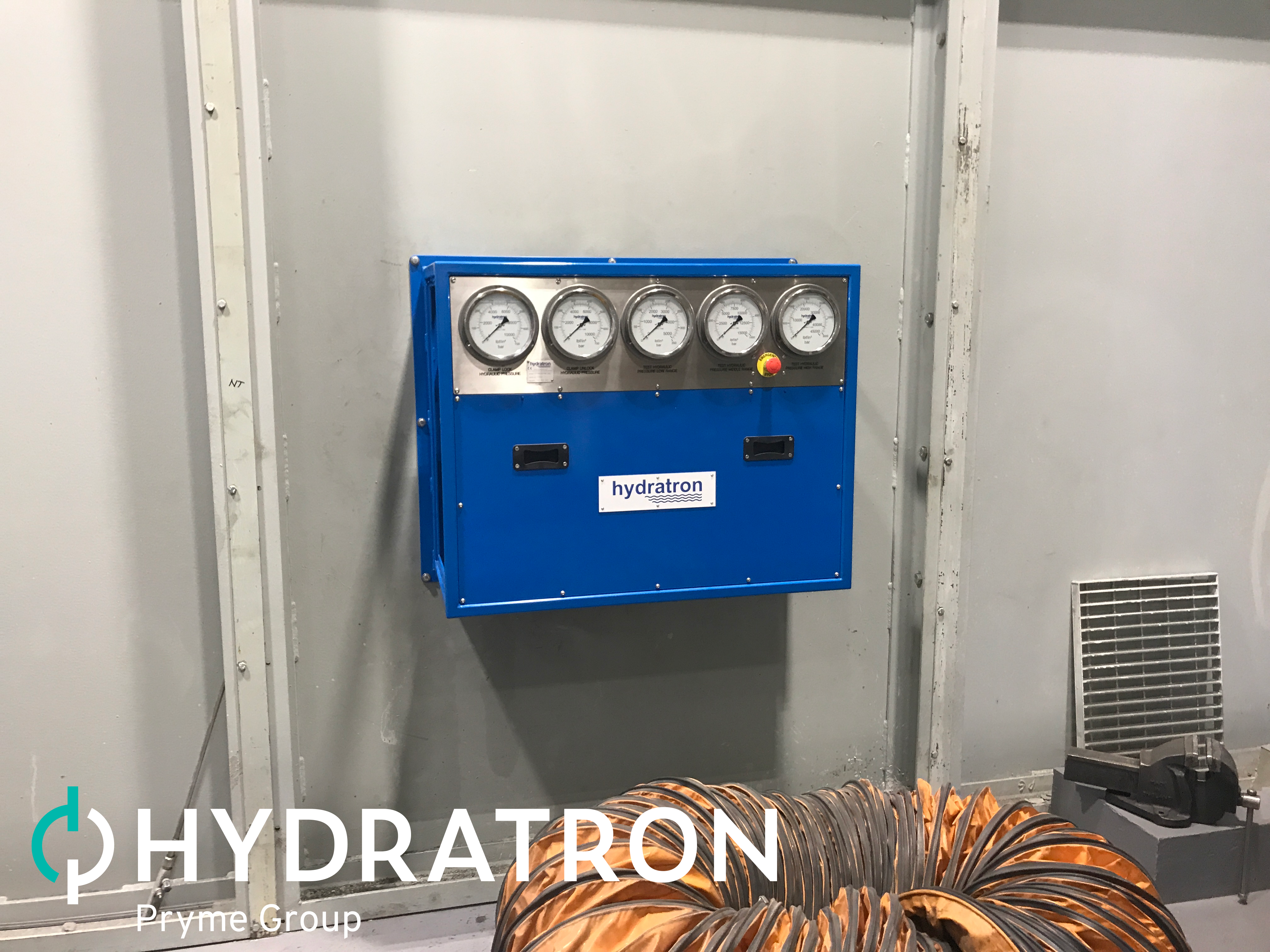 A global subsea connector manufacturer approached Hydratron to design, supply and install a new pressure testing system, to be installed in a new production and testing facility they were building. The customer required three testing cells, with total remote control and a full safety interlock system. The system needed to hydrostatically test at pressures up to 30,000PSI while also having the ability to produce high flow at a pressure of 1500PSI.